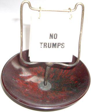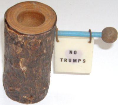 The trump indicator has its roots in card games from the eighteenth and nineteenth centuries, notably in Whist, a precursor to modern Bridge. In Whist, the trump suit was often determined by the last card dealt, which the dealer turned face-up. This card was added to the dealer’s hand, which could lead to players forgetting the trump suit. To counter this, trump indicators were developed towards the end of the 19th century. These devices, placed on the card table, denoted the current trump suit, aiding players during the game. They are also very popular for the game of Euchre, and of course, Bridge. In Bridge, players have an auction to determine what suit will be trump. It’s popular in what’s known as ‘kitchen bridge’ for a trump indicator to be used to help distracted players remember.